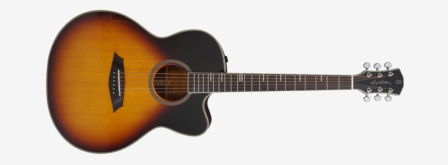 Grand Auditorium body made up of a solid Spruce on top and a solid Mahogany on the flipside combined with a Mahogany neck make the powerhouse to suit Larry Carton's preferences in an acoustic guitar.