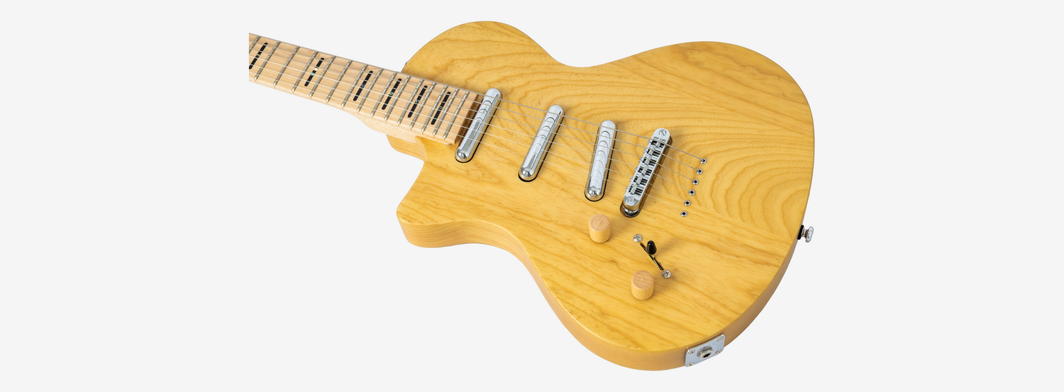 A redesigned single-cut body made of Swamp Ash, a wood material historically known to produce natural sound, combined with the Edgeless™ hard Maple neck for more fun plays.