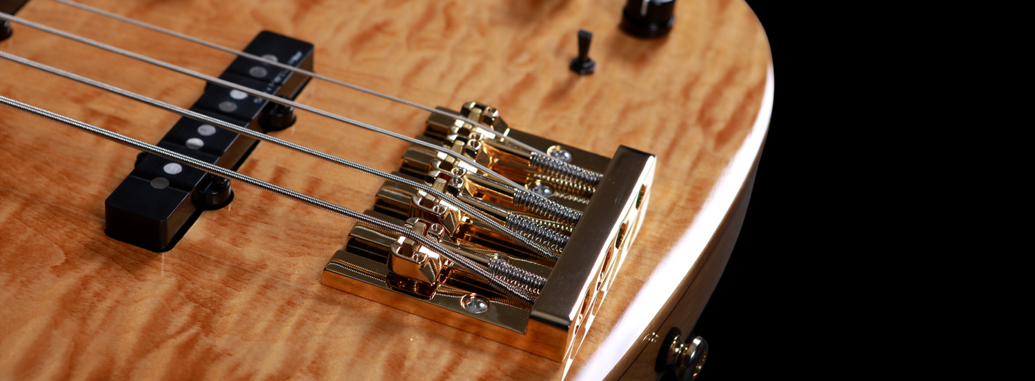 A Marcus Miller-preferred bridge usually found in bass guitars from higher price ranges. It features adjustable string spacing and replacement stainless steel saddle inserts to emphasize overtones and treble frequencies and recessed string ball holes for a sleeker, sexier look.