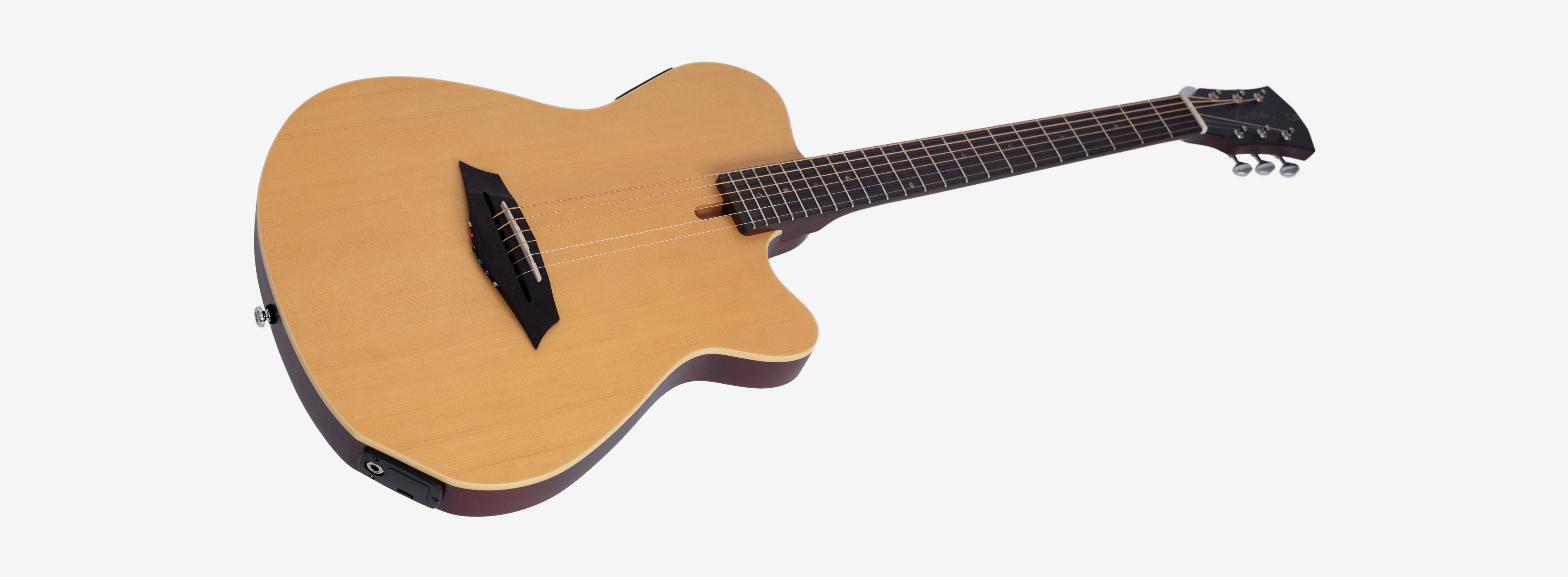 An electric guitar with acoustic sound. It features a chambered body and acoustic strings. Using a Piezo pickup processed through the new Sire preamp, ‘Vivid’, it offers an acoustic vibe suitable for stage use.