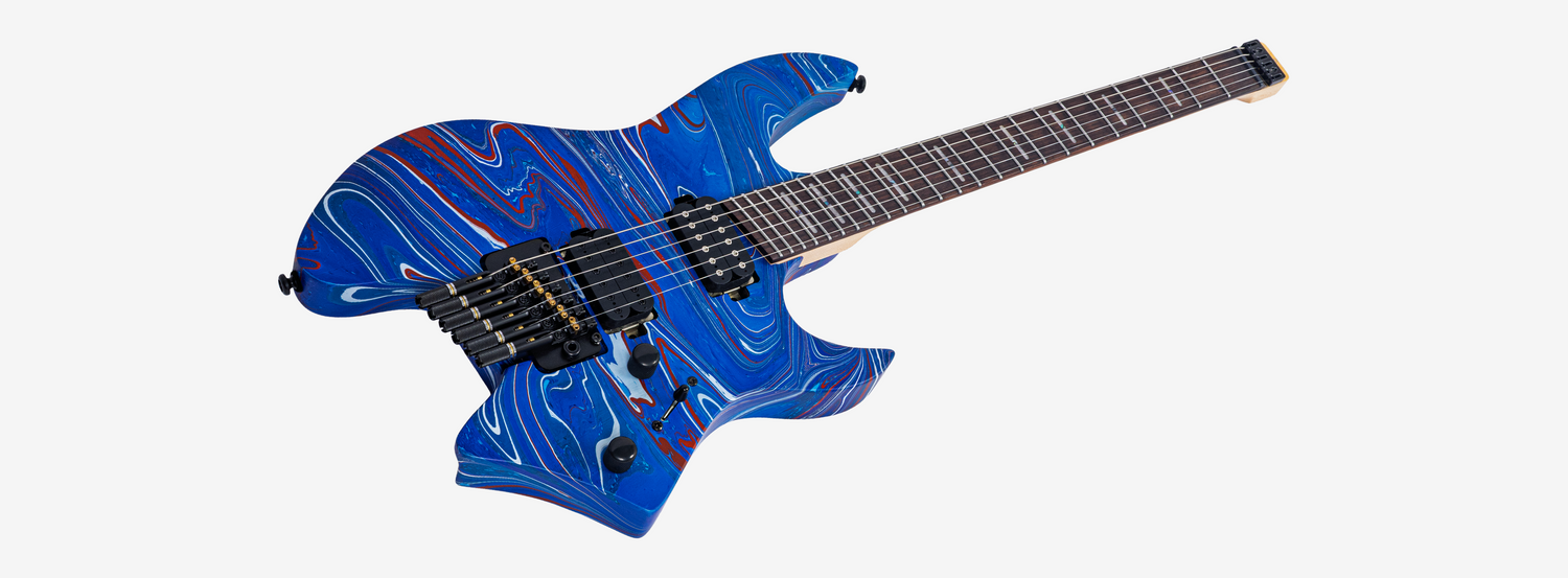 Stirring into the innovative world of instruments, Sire produces its own headless guitars. The new X6 offers a combination of modern sleek design and exceptional functionality, constructed with a lightweight build (approximately 6–7 lbs.) to ensure playing at ease. The X6 delivers a powerful and dynamic sound, making it a perfect choice for any players who want to go trendy without compromising performance. Available in 6 and 7-string variants. It comes with DR Dragon Skin+DEQ-10 electric guitar strings and Sire official gig bag.
