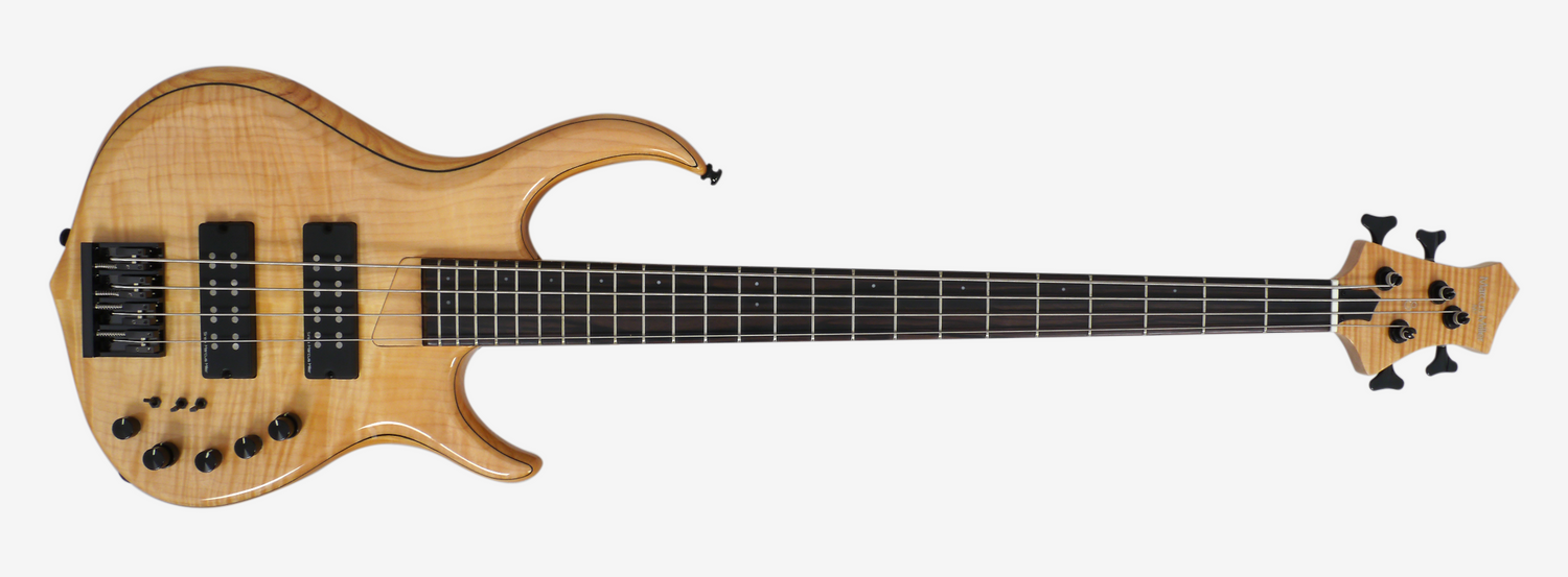 Contemporary bass shape made of Swamp Ash known to express fine-tuned quality build and sound in an instrument; topped with solid flamed Maple for a more luxurious finish.